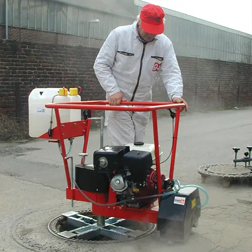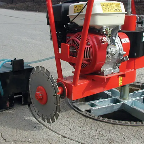Robuste, halbautomatische Schneidemaschine zum Ausschneiden von Schachtabdeckungen aus Asphalt und Beton