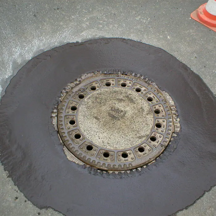 Mit MSK-Flüssig-Asphalt ist dies möglich, Das Mischgut entspricht nach dem Abbinden und Aushärten dem Asphaltmischgut im Heißeinbau.